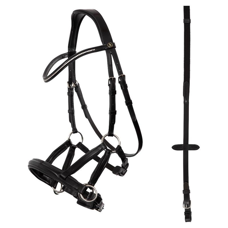 Ce bridon Lewes side & pull de forme anatomique sans mors est pourvu d'un rembourrage doux à plusieurs endroits et se distingue par ses boucles brillantes et ses diamants d'imitation.