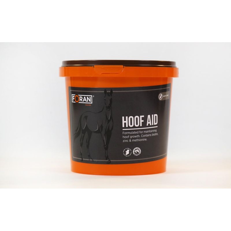 Scientifiquement formulé, poudre de renforcement des sabots contenant; biotine, méthionine, zinc, calcium et phosphore pour améliorer l'état et la santé des sabots. Hoof aid est riche en biotine, dont il est prouvé qu'elle améliore la qualité des sabots, ainsi qu'en acide aminé essentiel méthionine, qui renforce la microstructure du sabot. Sont également inclus les oligo-éléments clés; zinc, calcium et phosphore, utilisés pour fabriquer la corne du sabot.