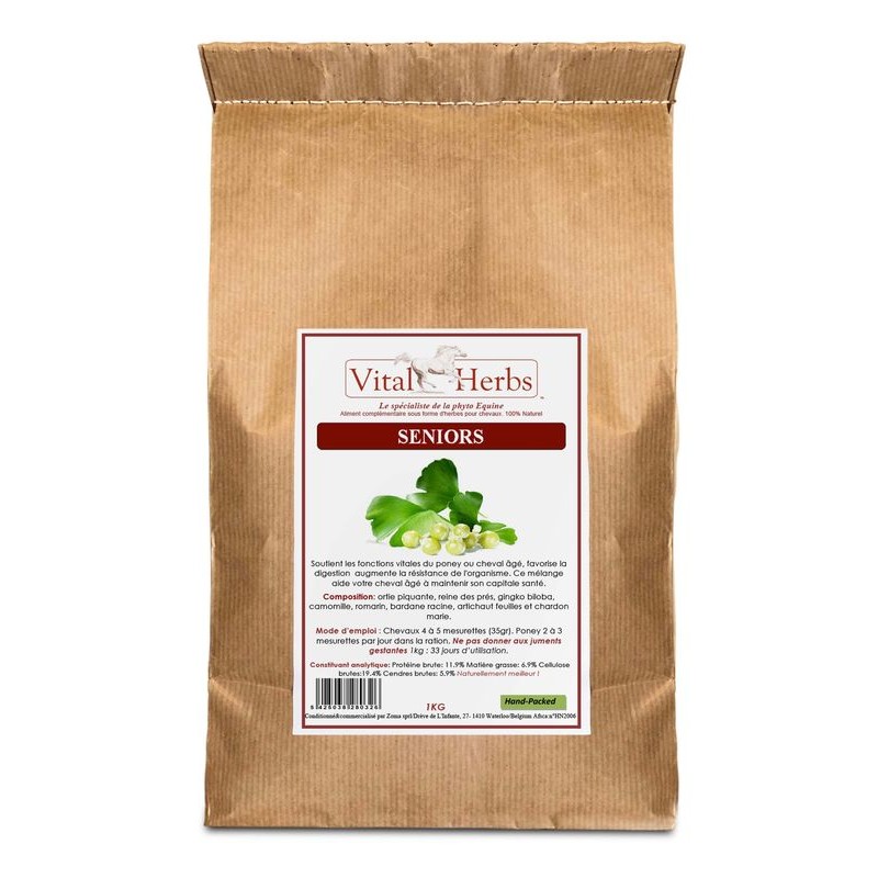 Seniors est un complément pour les chevaux âgés. Formulés à base de plantes 100% naturelles, cet aliment complémentaire à ajouter à la ration de votre vieux cheval va stimuler les défenses immunitaires pour affronter confortablement les changements climatiques.