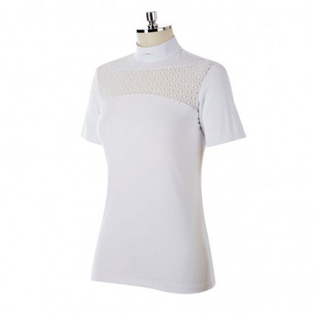 Polode concours avec élégant décolleté en tissu ajouré avec strass sur le tour et le rappel de la marque Animo en strass sur le col