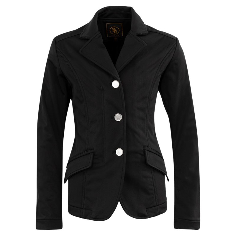 Cette veste de concours comporte divers éléments scintillants, tels que les boutons frappants, la bordure scintillante sur le col et la bande scintillante sur les manches. La veste possède également deux poches à rabat.