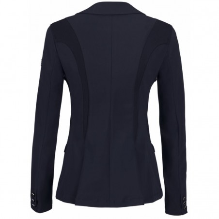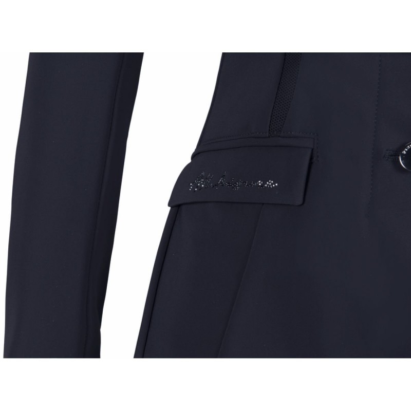 Veste de concours sportive et sophistiquée avec application en maille * Tissu fonctionnel Tech-Jersey, contrecollé * Confort de port agréable * L'étirement dans les 4 sens permet un confort de port optimal * Respirant et sèche rapidement * Les inserts en tissu en maille donnent à ce style un look sportif * Le modèle est arrondi par de subtiles applications de strass aux couleurs assorties * Fermeture à glissière dissimulée sur le bord avant pour un ajustement optimal