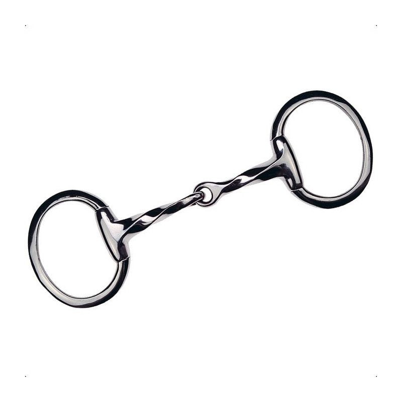 Mors en inox avec anneaux plats et canons torsadés. Un peu plus sévère pour les chevaux qui s'appuient.
