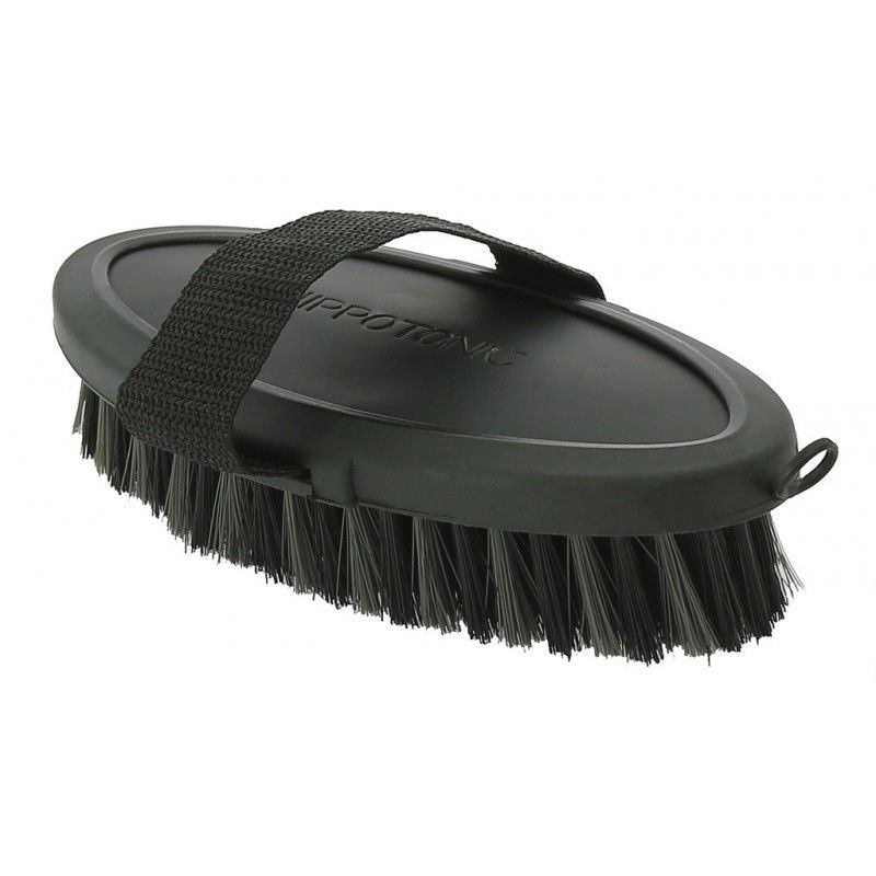 Brosse Dandy avec dos en polyuréthane effet cuir, âme en mousse et renforts soft touch sur les bords.Poils bicolores de 3,9 cm et bracelet en polypropylène.