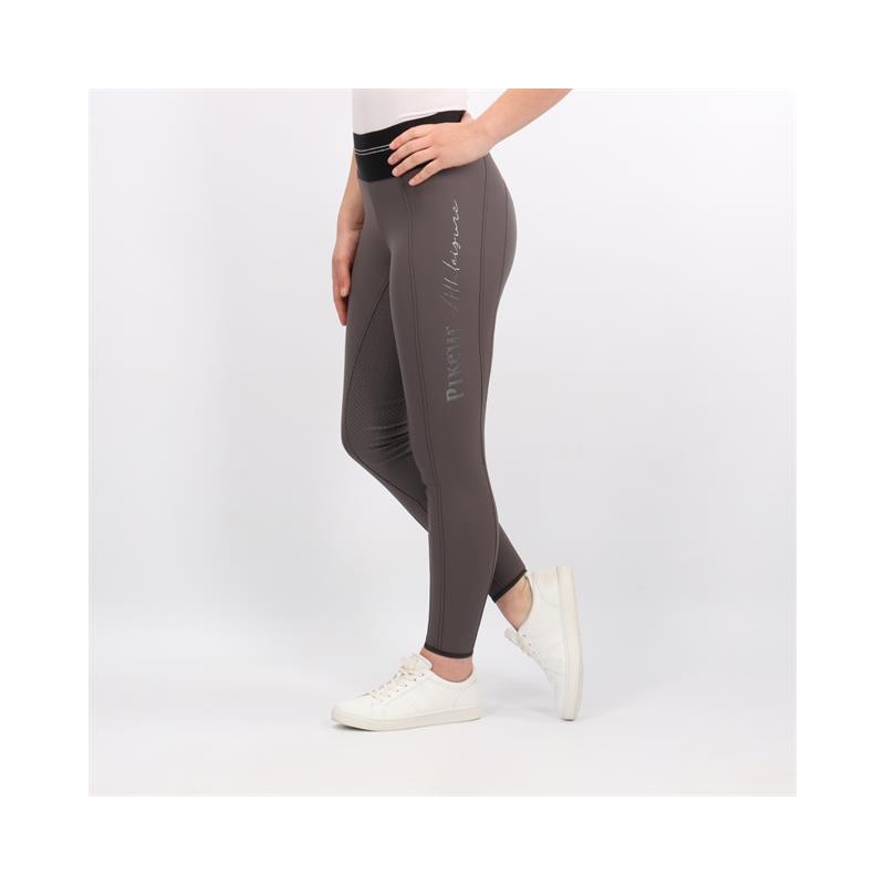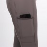 Pantalon d'équitation pour les femmes. Pantalon sportif avec ceinture large, basanes en silicones. Pourvu des poches avec fermeture éclair et un poche pour le portable sur le haut de la jambe. Le pantalon est fini avec une imprimée en scintillements sur la jambe gauche.