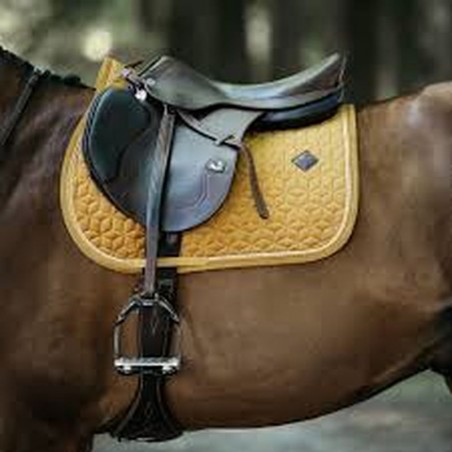 Le tapis de selle Saddle Pad Velvet très élégant avec son effet velours et son passepoil à double torsion. Ce tapis est conçu pour le dressage et offre un excellent amorti entre le dos du cheval et la selle, tout en protégeant contre les frottements. Le tapis de selle n'a pas de sangle gênante pour attacher la selle, seulement une sangle en nylon pour la sangle. Le tapis de selle comporte un logo en cuir subtil, tout en offrant suffisamment d'espace pour broder le tapis de selle si nécessaire. Il est lavable en machine à 30°, pas de sèche-linge.