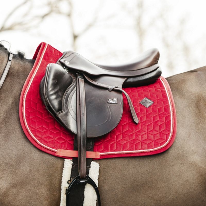 Le tapis de selle Velvet Dressage est très élégant avec son effet velours et son passepoil à double torsion.