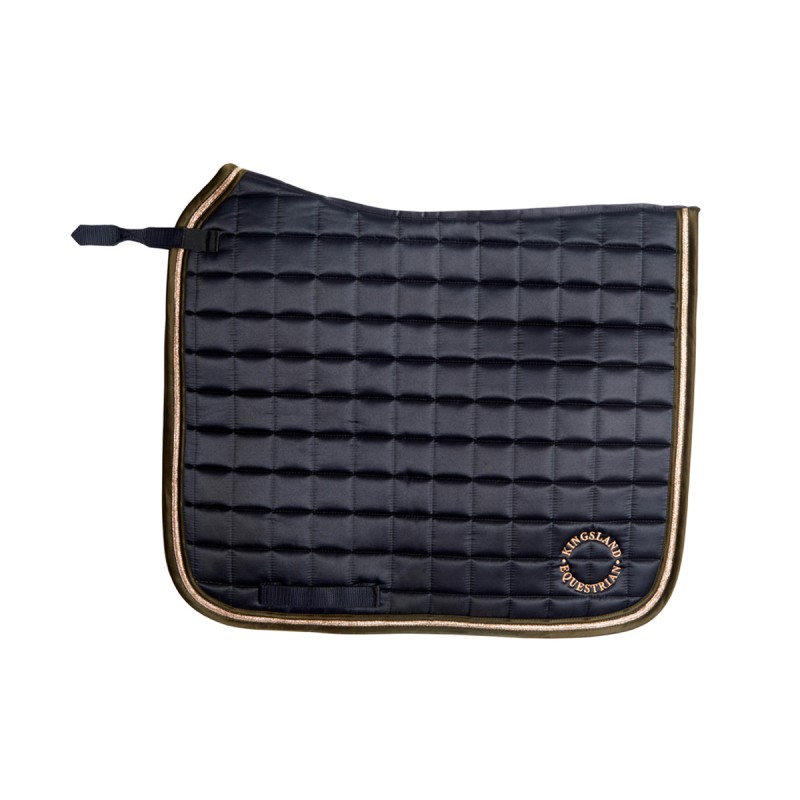 Tapis de selle super cool, avec un tissu extérieur brillant, dans un design élégant et pratique. Le tapis de selle Selena de la collection d'hiver de Kingsland est doté d'une doublure en bambou et est équipé de passants de sangle et contre-sanglons. Des détails fun, un tissu satiné et un motif de surpiqûres luxueux